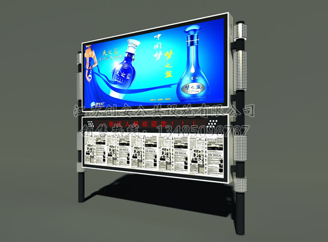 閱報(bào)欄廠家-江蘇創(chuàng)安公共設(shè)施有限公司是一家集研發(fā)、生產(chǎn)、銷售宣傳欄-閱報(bào)欄廠家-于一體的股份制企業(yè)。主要從事廣告設(shè)備的研發(fā)與生產(chǎn),是國(guó)內(nèi)專業(yè)生產(chǎn)廠家之一。公司總占地面50畝,標(biāo)準(zhǔn)化廠房20000平方米,公司擁有數(shù)控剪板機(jī)、大型折彎?rùn)C(jī)、數(shù)控沖孔機(jī)床、線切割機(jī)、吸塑機(jī)、噴塑房、烤漆房等各種生產(chǎn)設(shè)備。公司擁有一支高素質(zhì)好效率高的專業(yè)團(tuán)隊(duì),在廠職工60%以上具有大專的學(xué)歷,擁有工程師8人,各類技術(shù)人才30余人。公司設(shè)有剪折車間,沖壓車間,焊接車間,噴涂車間,組裝車間。江蘇創(chuàng)安公共設(shè)施有限公司以先進(jìn)的經(jīng)營(yíng)理念、熱忱的服務(wù)態(tài)度,曾被評(píng)為先進(jìn)民營(yíng)企業(yè)、省級(jí)重合同守信用企業(yè)等殊榮。